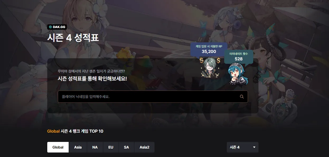 루미아 섬에서의 지난 시즌 여정을 닥지지에서 이터널 리턴 시즌4 성적표와 함께하세요!