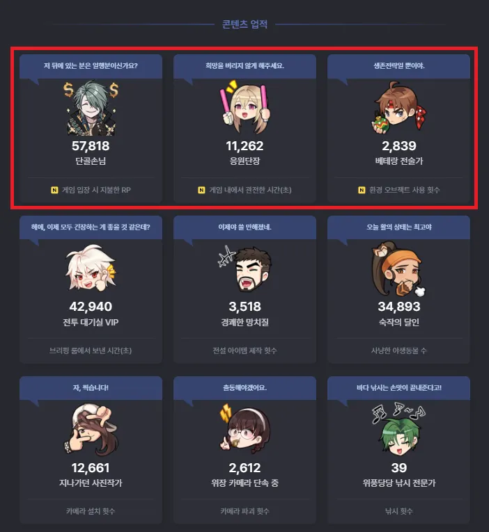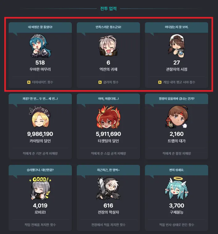 신규 전투 업적 3종과 콘텐츠 업적 3종