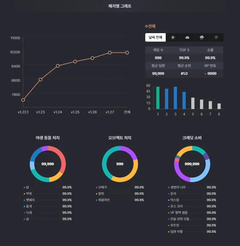 또한, 패치별 그래프를 통해 RP 변동을 비롯한 패치 버전 통계를 비교할 수 있답니다.