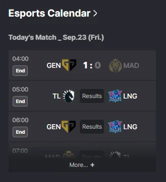 Esports Calendar shows on DAK.GG main. We avoid score spoiler, you can click to see the results.