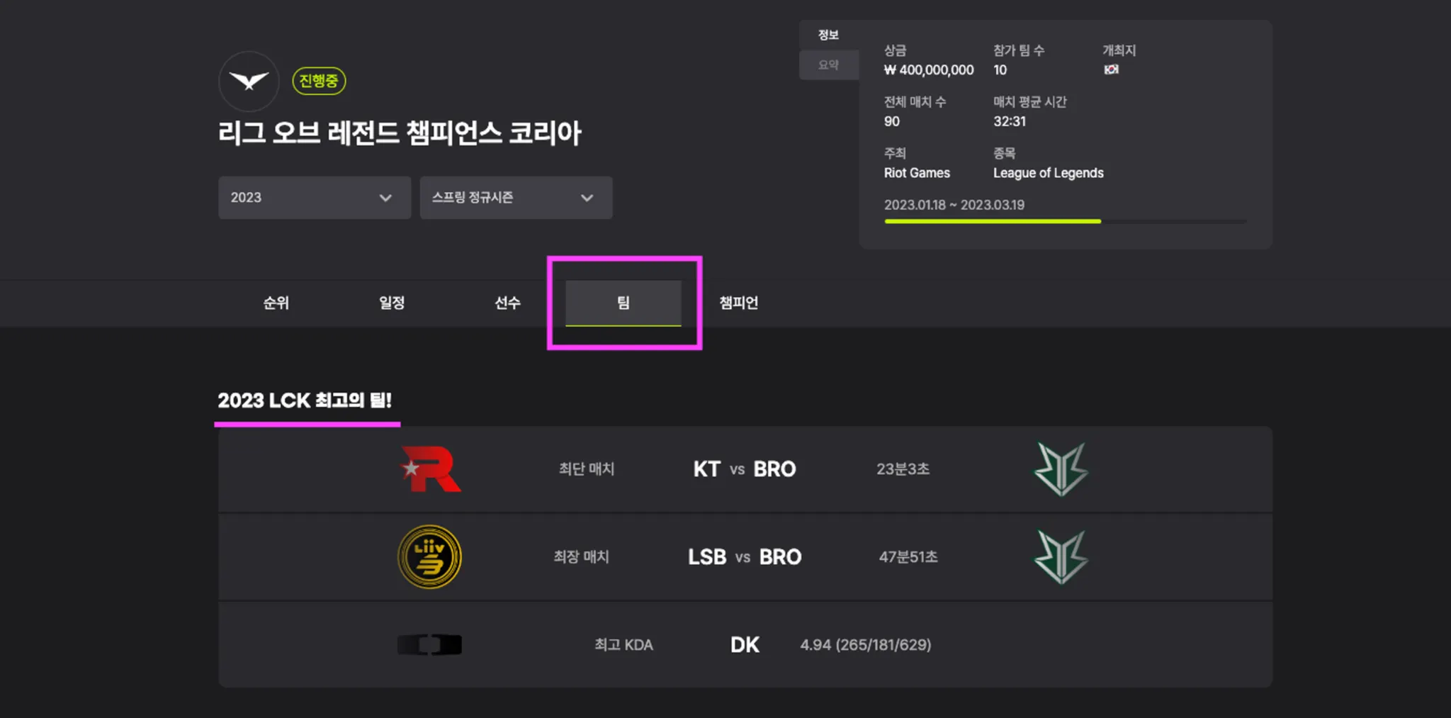 2023 LCK Spring! 리그 절정으로 향하는 요즈음, 여러분을 위한 편리한 기능을 만들었어요!