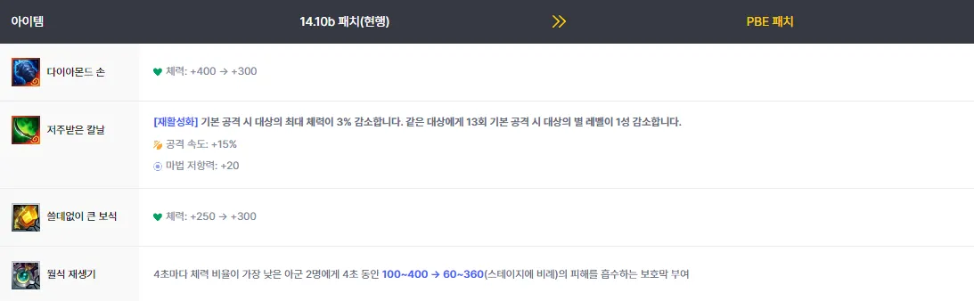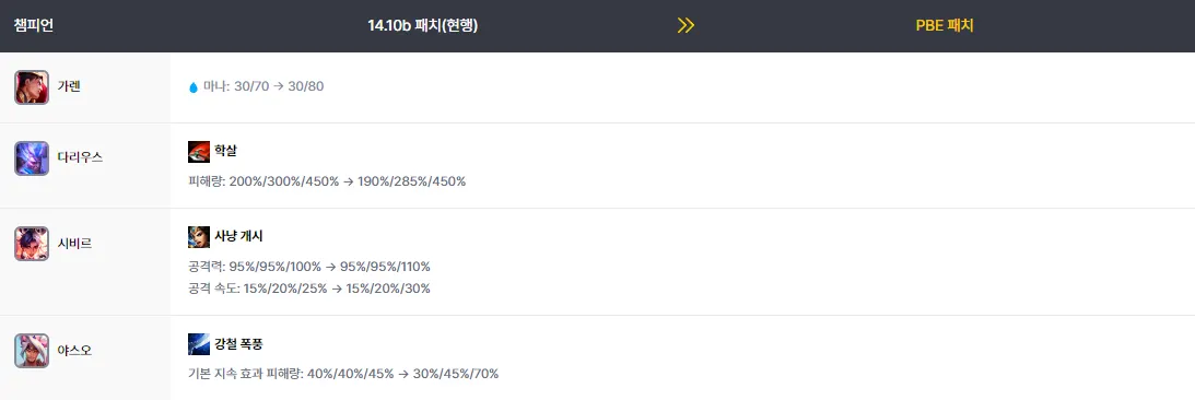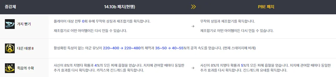 이러한 변경사항을 한눈에 보여주는 PBE 패치 노트가 출시되었습니다!