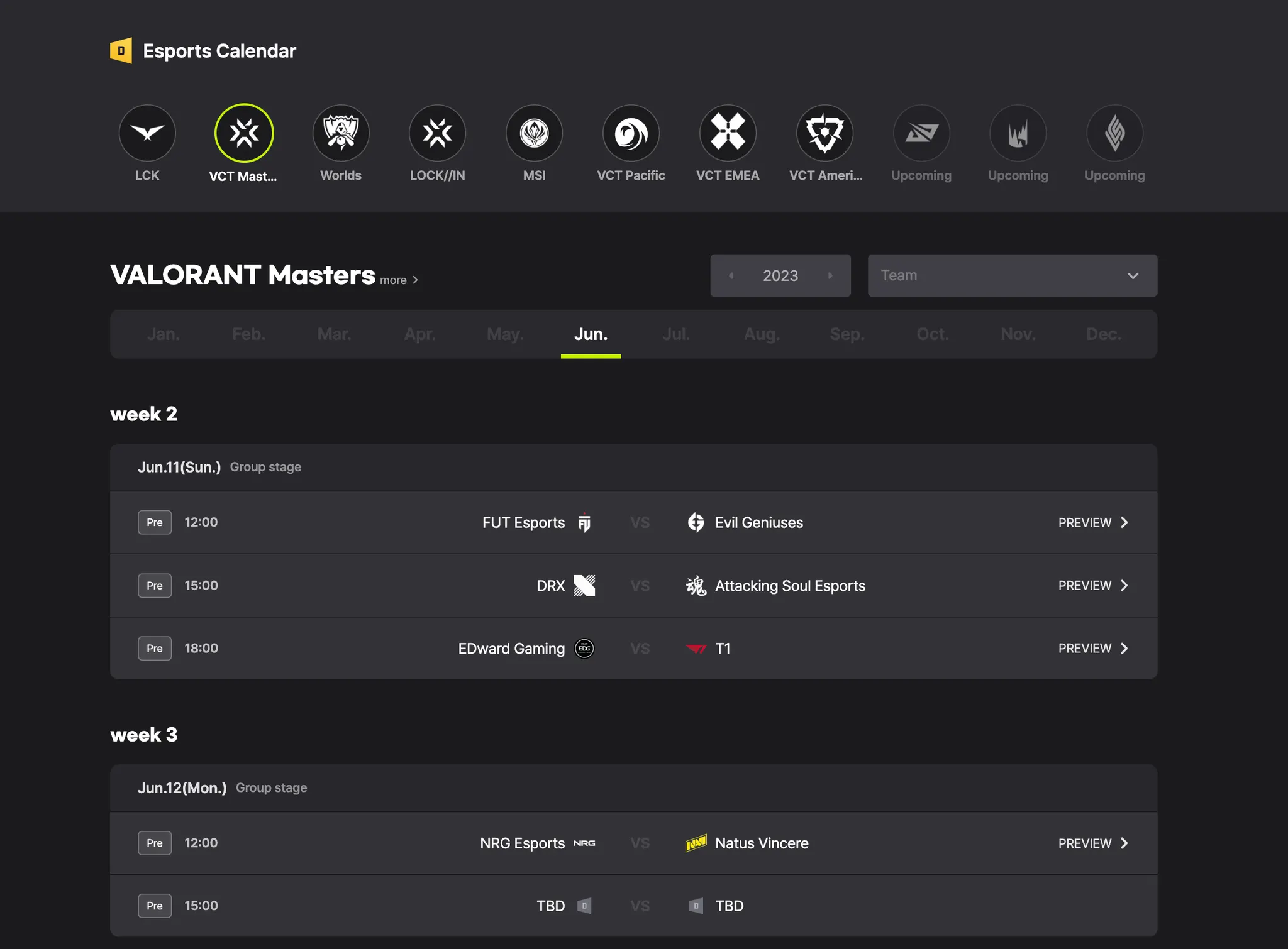 Get quick access to the schedule and results of VALORANT MASTERS competitions.
