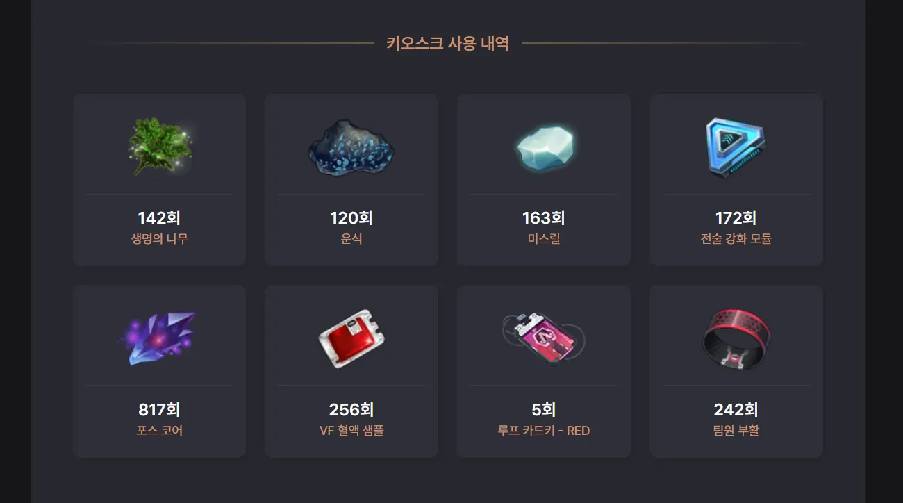 시즌 8 동안 여러분이 키오스크를 어떻게 활용했는지 모든 내역을 공개합니다.
