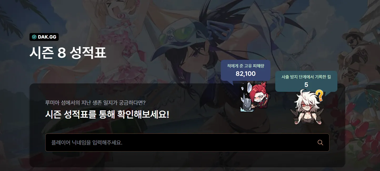 지난 여정을 기억하며, DAK.GG 이터널 리턴 시즌 8 성적표에 많은 관심 부탁드립니다!