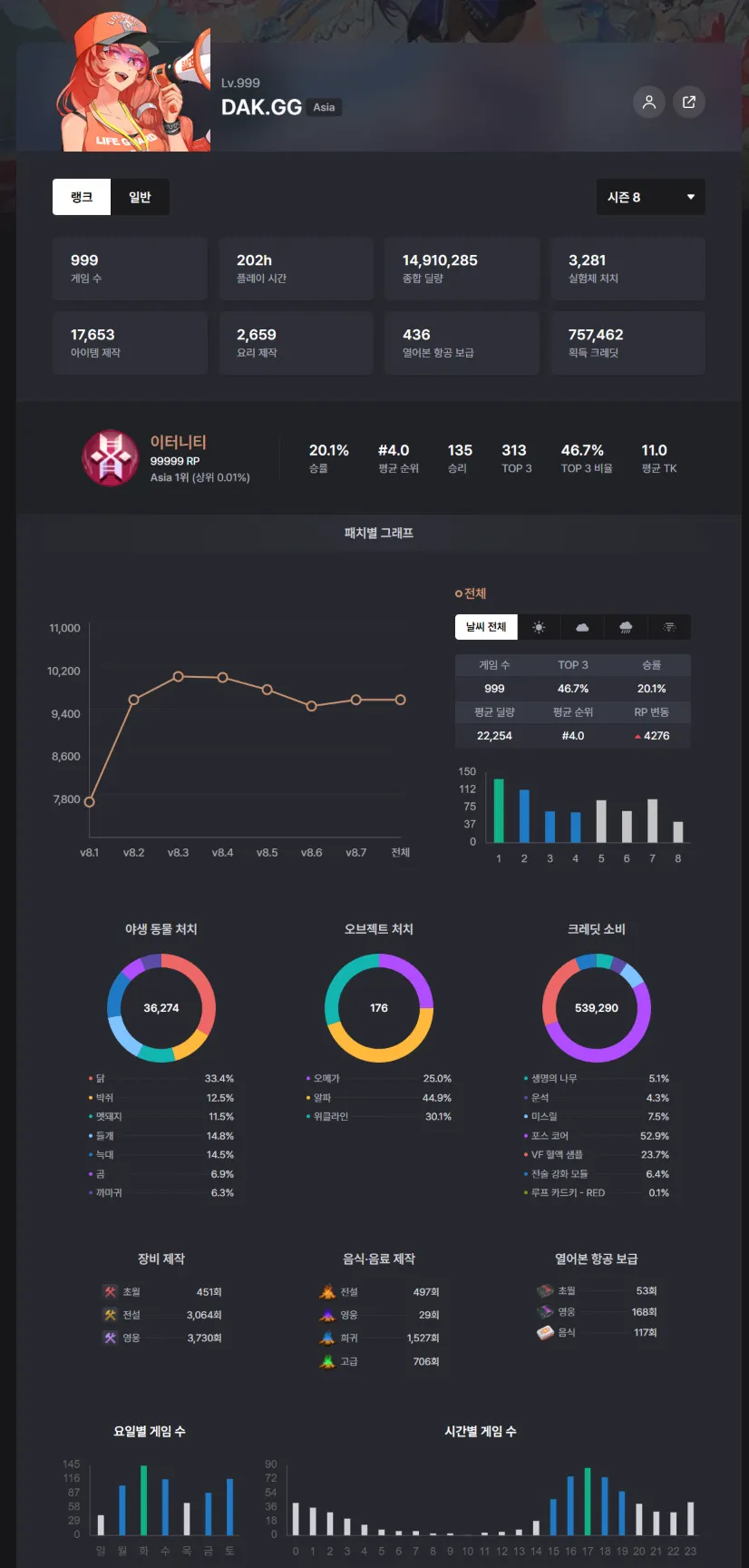 시즌 8을 돌아보는 통계 그래프가 패치별로 제공됩니다.