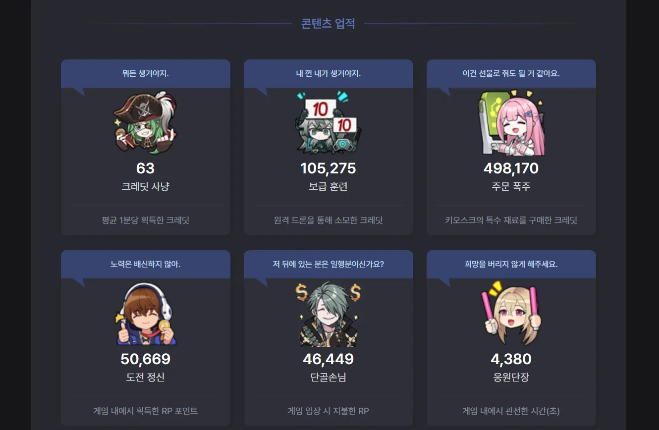 여러분의 플레이가 만든 소중한 추억들을 성적표에 모두 담았습니다.