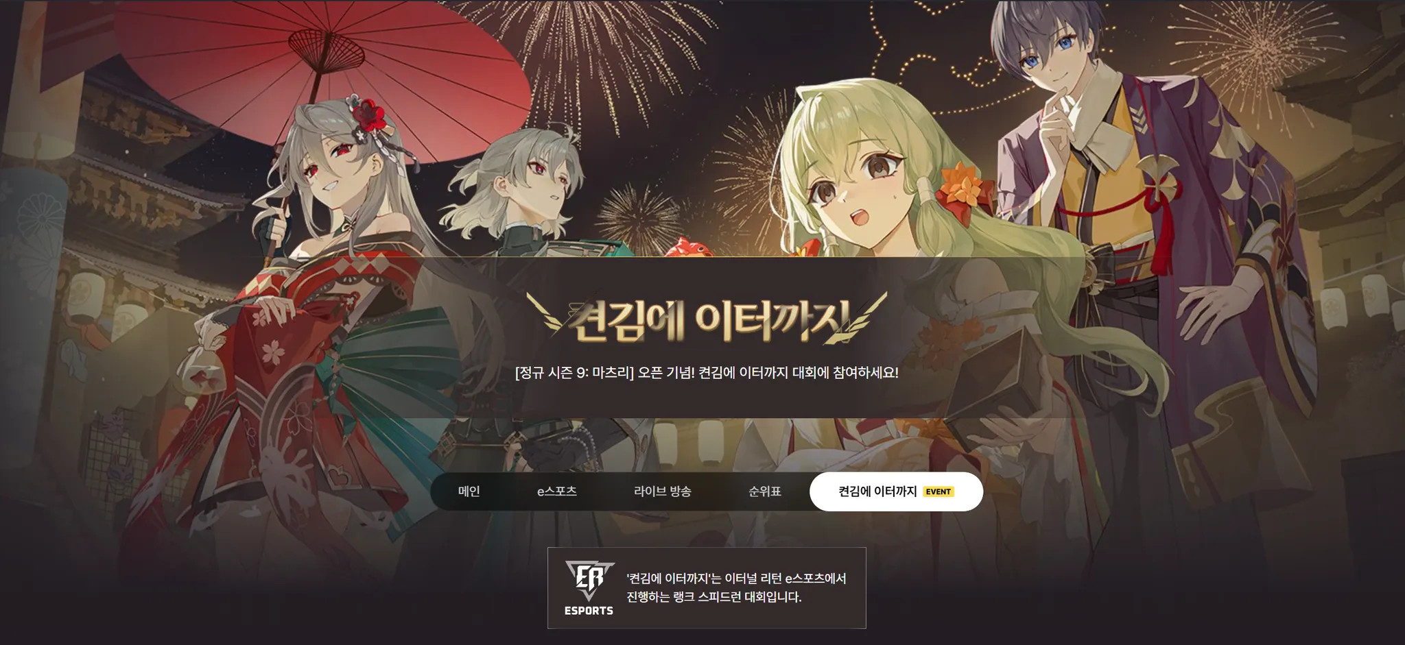 켠김에 이터까지는 최상위 랭크를 향해 이터널 리턴 e스포츠에서 진행하는 랭크 스피드런 대회입니다.