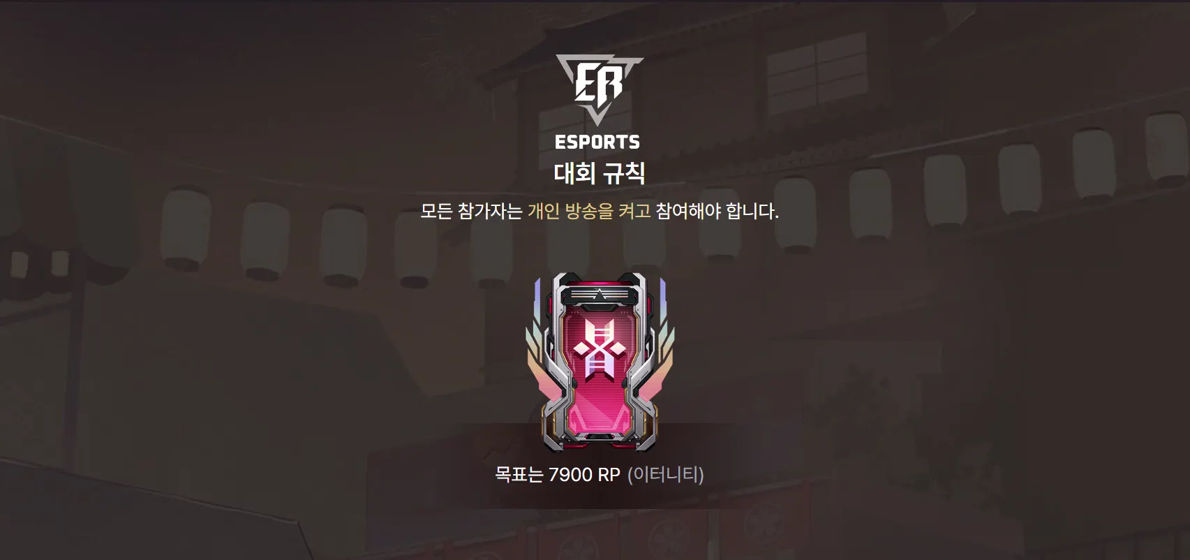 대회의 투명성과 공정성을 위해 모든 참가자는 개인 방송을 송출한 상태에서 게임을 진행해야 합니다.