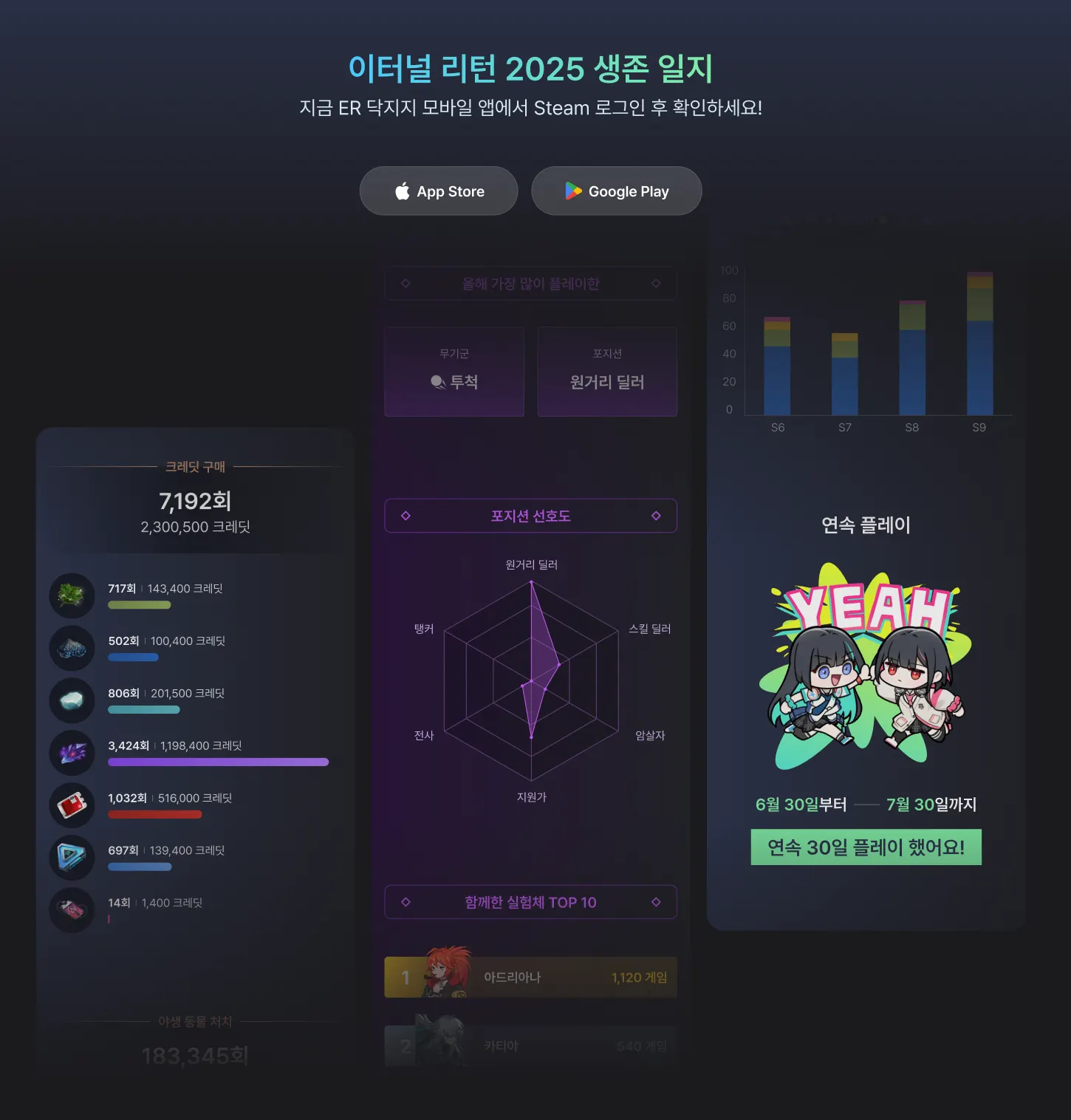 이터널 리턴과 함께한 여러분들의 특별한 이야기를 지금 ER 닥지지 앱에서 확인해보세요!