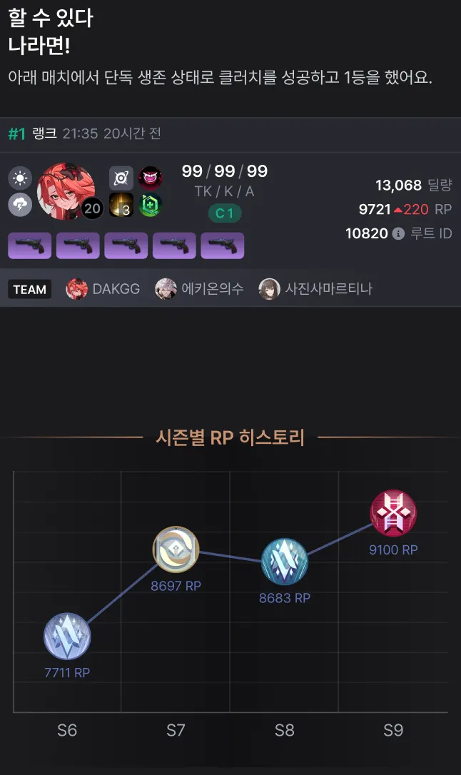 시즌마다 쌓아온 RP의 변화를 그래프로 확인하세요.